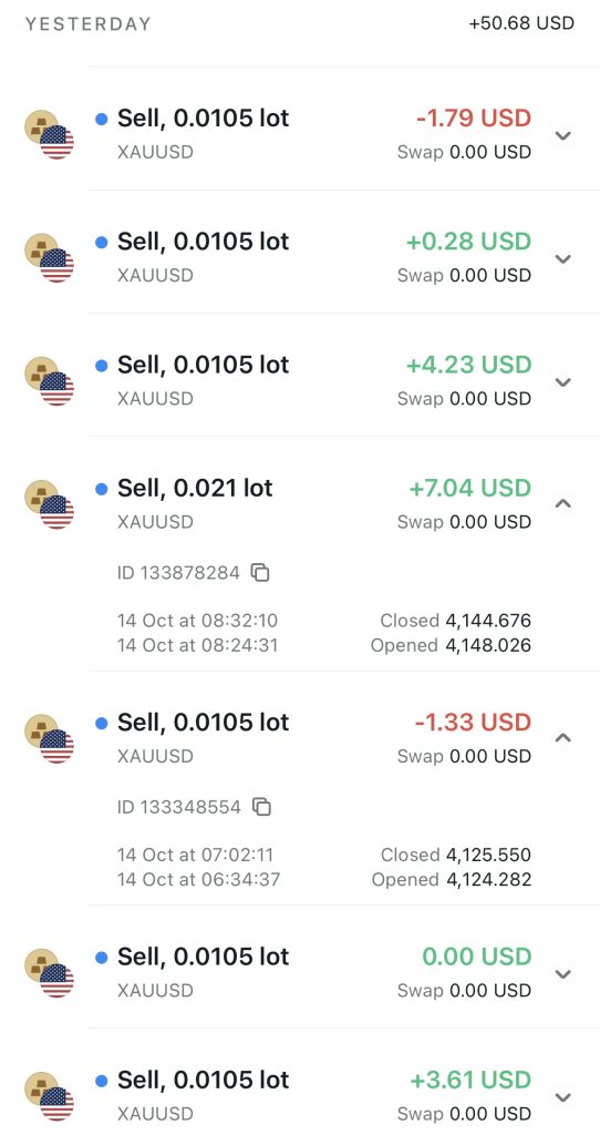 Good morning, gold trading enthusiasts! Bask in the XAUUSD Profit Shine on tradegoldnow.com, where yesterday, Tuesday, October 14, 2025, delivered a solid $50 profit via my Exness copy trading system. This gain navigated a dramatic $20 drop in a single 1-minute candle, fueled by high volatility from GBP Unemployment at 4.7% and EUR ZEW at 30.2. Today, Wednesday, October 15, 2025, XAUUSD opens at 4,141, with a low of 4,141 and a high of 4,167 at 07:01 AM WIB, signaling fresh momentum. Check the proof below —your trading success! New to trading? Learn how to start copy trading XAUUSD with Exness in just 5 minutes! Click here to get started